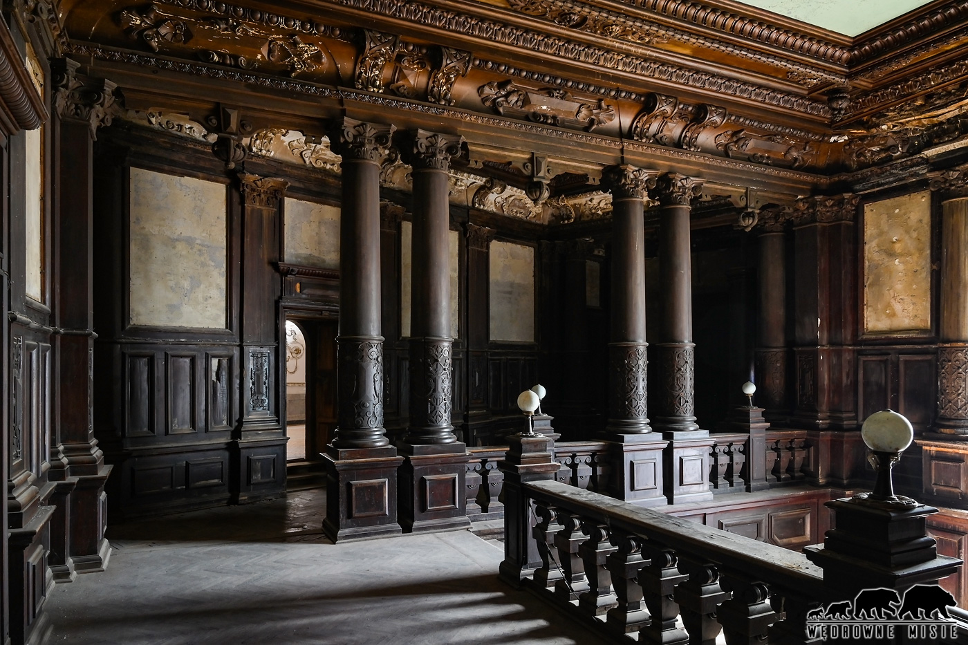 Neorenesansowa bryła nawiązująca do francuskiego stylu w środku zyskała bogate drewniane wyposażenie, w tym płaskorzeźby nawiązujące do polowań i przyrody, gdyż miała być pałacem myśliwskim. Posiada salę balową z ornamentami i sztukaterią, bajeczny pokój muzyczny, w którym nadal zachwyca akustyka, bibliotekę a nawet bogato zdobioną, prywatną kaplicę z imponującym balkonem. Czasem od przesytu i wszystkich dekoracji można dostać zawrotów głowy. Skoro pieniądze płynęły wartkim strumieniem, nie było potrzeby i pewnie chęci, aby się ograniczać.