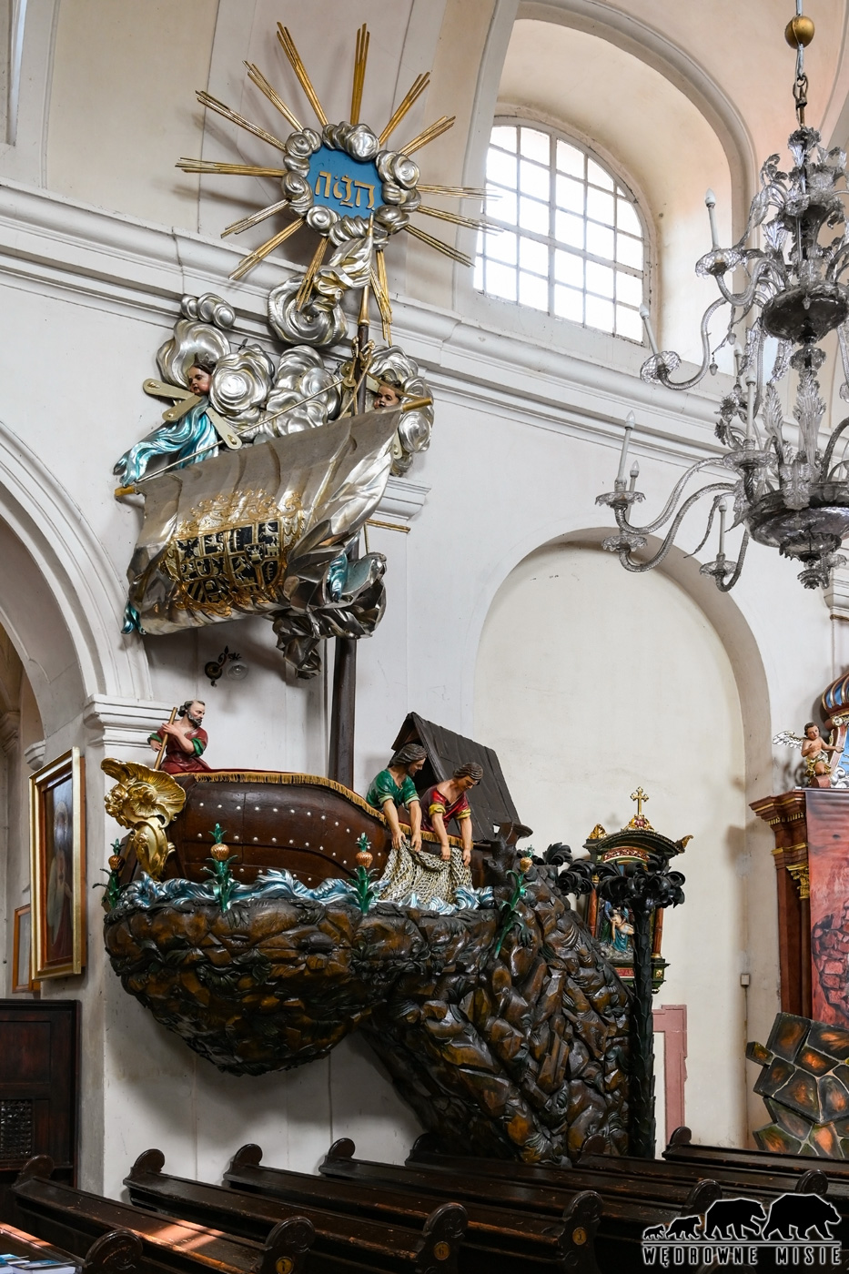 Fundatorem kościoła naprzeciwko pałacu był hrabia von Goetzen, wcześniejszy właściciel bożkowskich włości. Zachwyca w niej manierystyczna ambona w kształcie łodzi ze świętym Piotrem i rybakami wyciągającymi sieć. W kolejnych latach to już Magnisowie dbali o świątynię. Sam protoplasta majątku – Anton, spoczywa w bocznej, okrągłej kaplicy grobowej w żeliwnym sarkofagu, nad którym umieszczono jego popiersie otoczone wypisanymi złotem mottami. Górne autorstwa Horacego to słynne „Wzniosłem pomnik trwalszy od spiżu”, poniżej zaś widnieje „Czysty w sercu, prawy w duchu”. Nie zabrakło także motywu rolniczego – kłosów zboża.