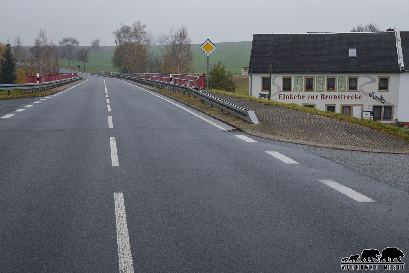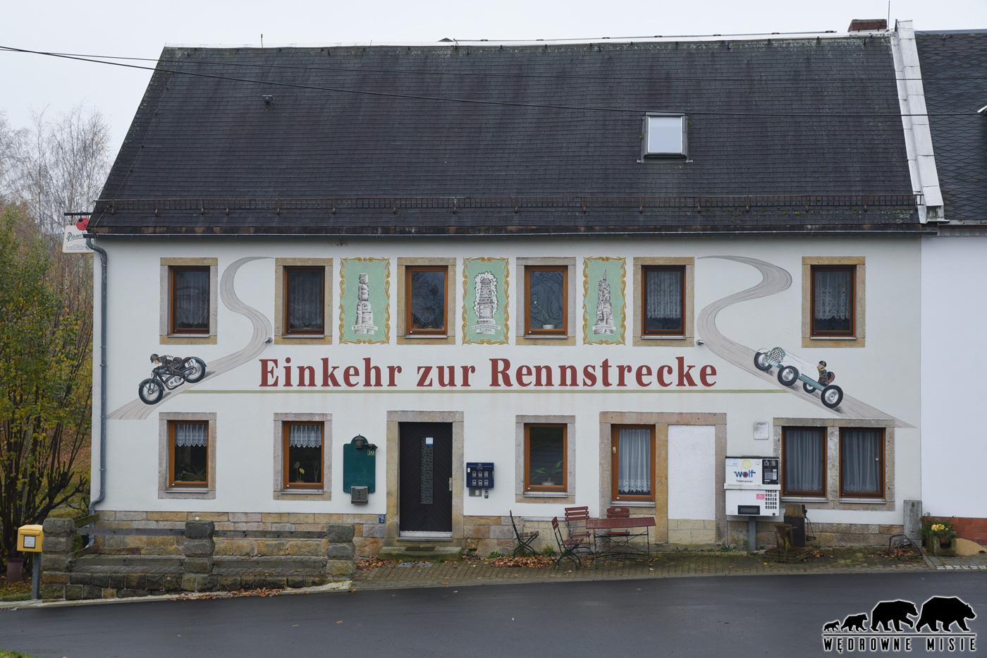 Osoba spostrzegawcza jadąca do zamku tuż u jego podnóża zauważy serię pięknych serpentyn i zakrętów oraz barierki pomalowane na charakterystyczny biało-czerwony kolor. Jeżeli dodatkowo ma ona „benzynę we krwi” od razu będzie wiedziała z czym ma do czynienia. To prawie w całości dostępne do ruchu pozostałości toru wyścigowego wybudowanego jeszcze za czasów III Rzeszy. Niestety oryginalna nawierzchnia została zachowana tylko w jednym, niewielkim fragmencie. Mimo to, jest to prawdziwa gratka dla maniaków prędkości, szczególnie pięknie prezentująca się w jesiennym anturażu.