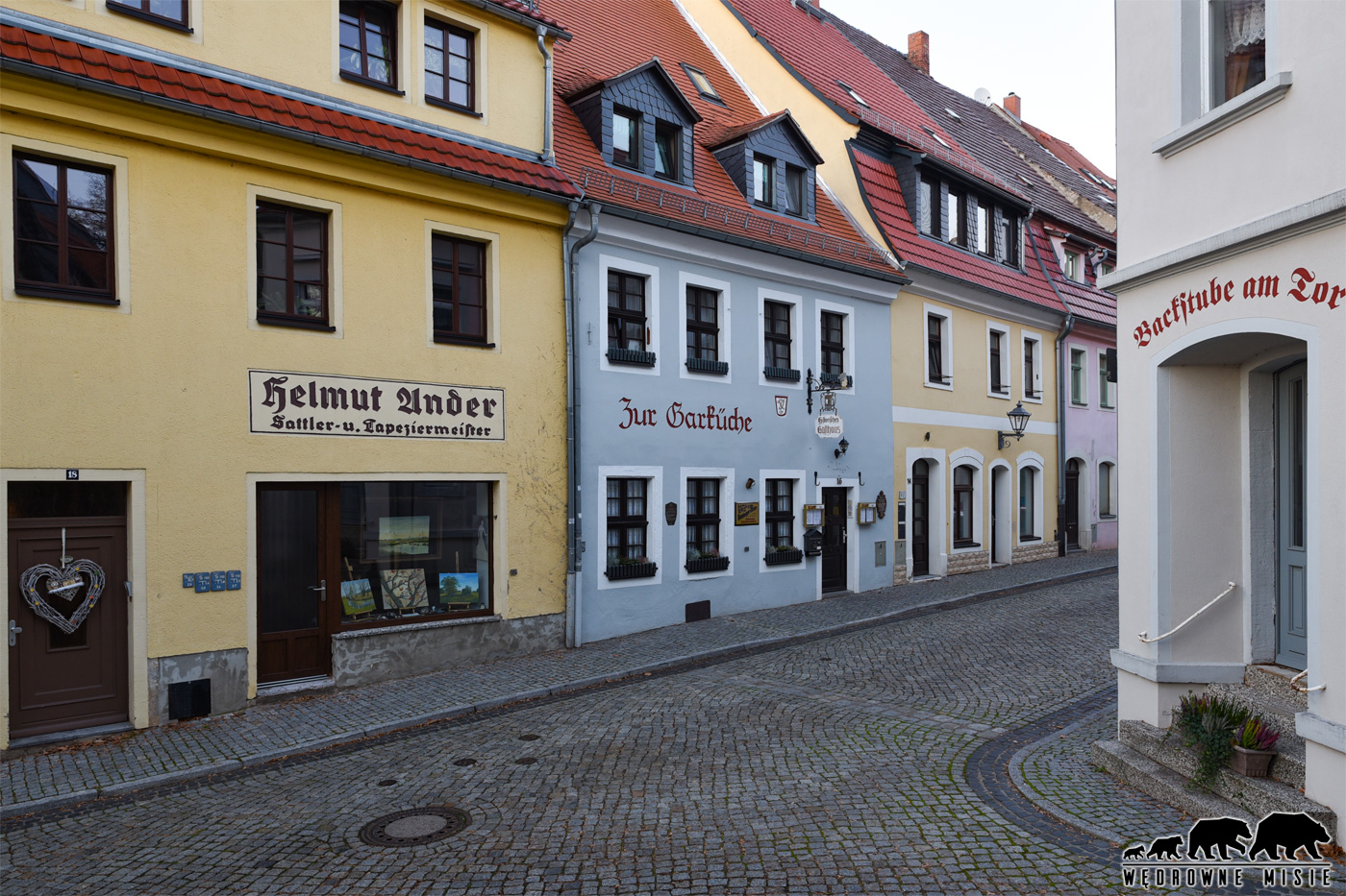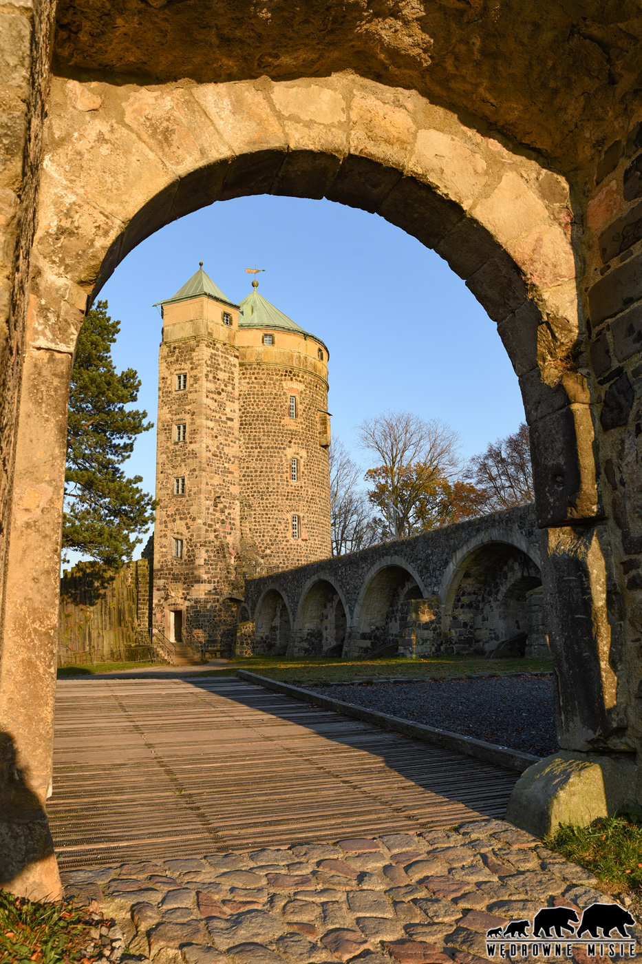 „Stolpno” oznacza „miejsce kolumna” i patrząc na zamkowe wzgórze etymologia nazwy wydaje się jasna i trafiona. Będąc tutaj nie możemy pominąć też samej osady gdyż ma ona zachowany średniowieczny układ z wąskimi, uroczymi ulicami, po których spacer urozmaici Wam poszukiwanie… gryzoni! „Bazaltowe myszy” to gra miejska mająca na celu zaangażowanie rodzin w zwiedzanie miasta oraz poznawanie historii, czyli coś na wzór wrocławskich krasnoludków lub katowickich beboków. Dostępna jest mapka, którą można kupić w kilku miejscach w mieście (w tym na zamku) lub pobrać ze strony internetowej. Urocze maluchy porozmieszczane są w nieoczywistych miejscach (na parapetach, dachach, w krzakach i wewnętrznych dziedzińcach) trzeba więc mieć oczy szeroko otwarte, ale zabawa zachęca do spaceru i angażuje również małych podróżników. Odwiedzając więc więzienie hrabiny Cosel zajrzyjcie również i tutaj, do miasta po którym ona przez wiele lat spacerować nie mogła.
